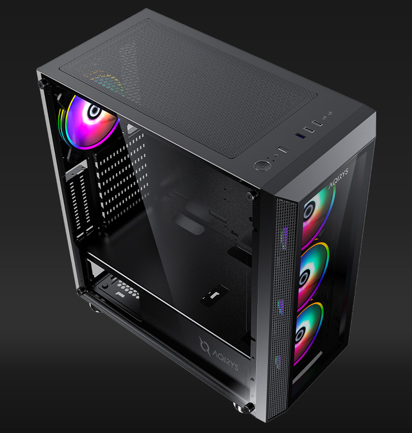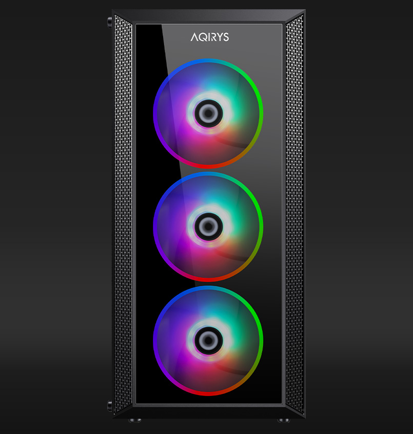 The edge-to-edge light-grey tinted tempered glass side panel of RIGEL provides a full but mysterious view of your gaming rig depths. Crafted from the same tempered glass, the front panel is brought to life by three 3-ring inner RGB fans, ready to put quite a show in the eye of the beholder.